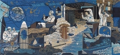 “大國重器”亮點(diǎn)紛呈,脫貧攻堅(jiān)成就舉世矚目,這些時代新象都在展覽中得到體現(xiàn)。例如,張輝君油畫《蛟龍入?!?、沙永匯版畫《北斗》等作品,折射出我國科技自主創(chuàng)新能力不斷提升??鬃现袊嫛陡瓯跒泛蛣⒃浦袊嫛睹利愢l(xiāng)村》,分別借助植樹造林的人物群像塑造、新農(nóng)村景觀的宏闊描繪,展現(xiàn)了彪炳史冊的人間奇跡。