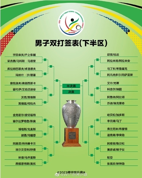 2023德班世乒賽男單具體抽簽結(jié)果:
