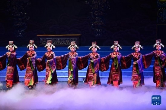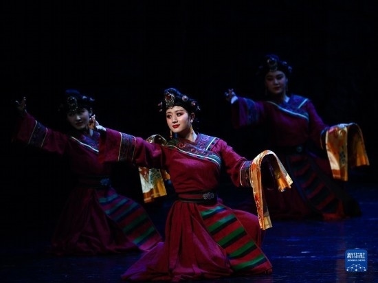 5月24日晚,演員在青海大劇院表演大型藏戲《金城公主》。