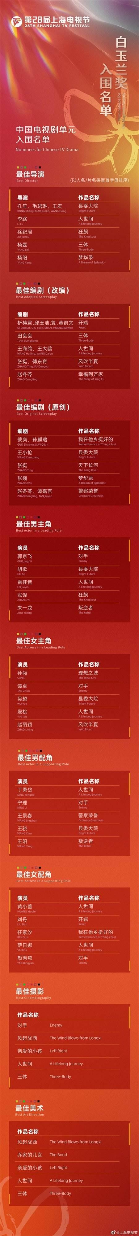 附:第28屆上海電視節(jié)白玉蘭獎入圍名單