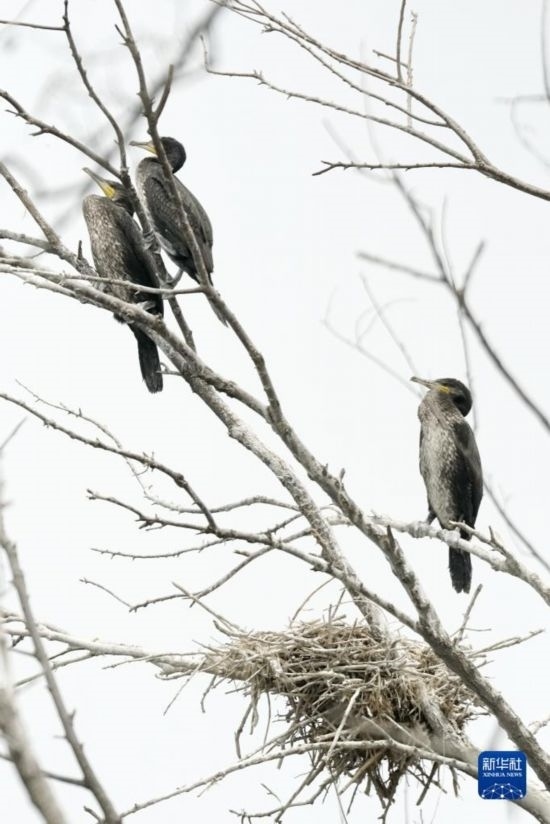 密云水庫“鳥島”上育雛的鸕鶿(5月31日攝)。