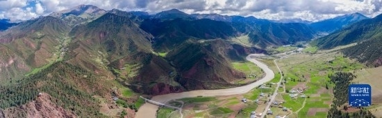 6月22日在國道317線昌都段類烏齊縣附近拍攝的河谷景觀(無人機照片)。