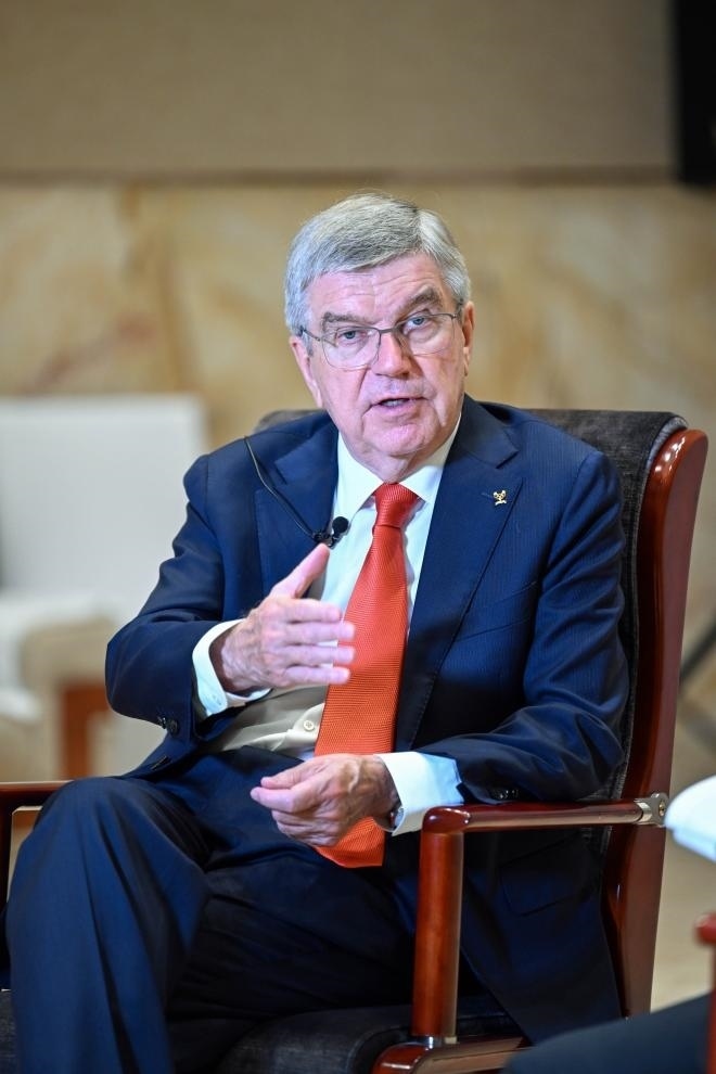 9月22日,國際奧委會(huì)主席巴赫在杭州接受新華社記者專訪。新華社記者 曹燦 攝