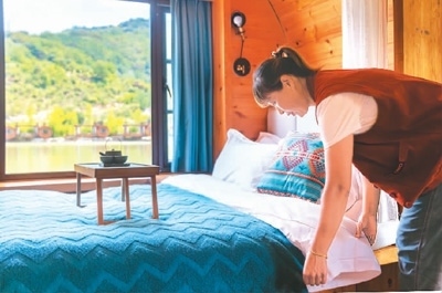 或面朝大海,或棲居山間,在很多人眼中,民宿管家的工作正是大家追尋的“詩(shī)與遠(yuǎn)方”。實(shí)際上,孔杰表示,民宿管家的日常工作綜合性強(qiáng),干起來(lái)并不輕松。她舉例說(shuō),除了提供基礎(chǔ)的住宿服務(wù),如辦理入住、接待、清潔、安排用餐等,還要為住客規(guī)劃出行路線、推薦游玩景點(diǎn),如怎么爬山戲水、景區(qū)數(shù)十處特色體驗(yàn)館如何游玩等。
