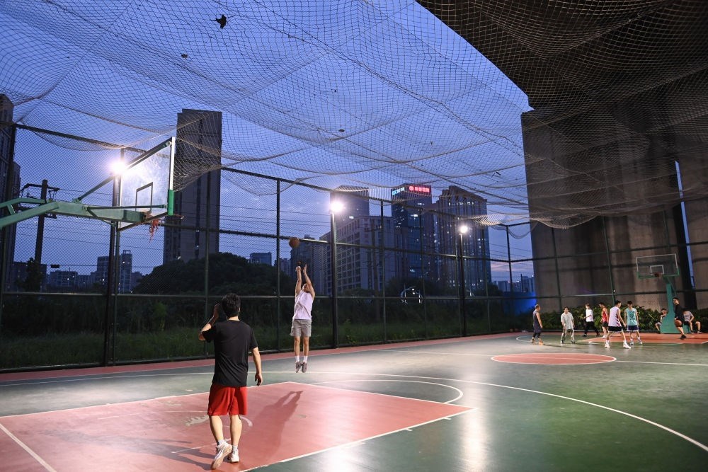 這是市民在錢江世紀(jì)城體育公園打籃球(2022年9月20日攝)。新華社記者 黃宗治 攝