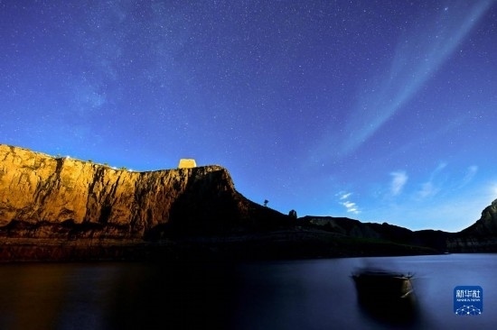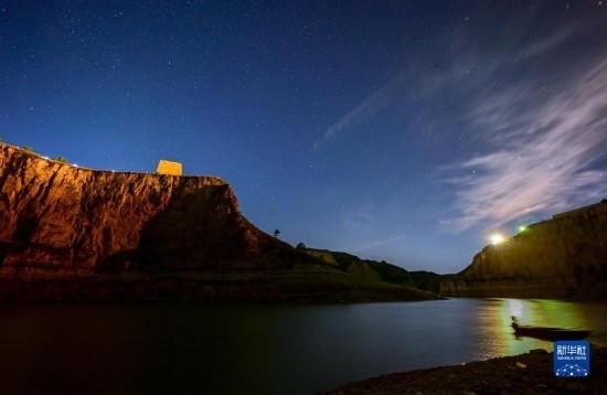 黃河老牛灣位于內(nèi)蒙古自治區(qū)和山西省交界處。夜空下,峽谷兩岸壁立千仞,黃河奔流不息,明長城依山而行,風光壯美。
