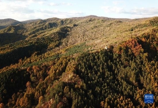 這是10月2日拍攝的黑龍江省海林市的五花山景觀(無(wú)人機(jī)照片)。