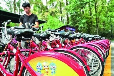 杭州共享單車上的亞運(yùn)會吉祥物圖案。本報(bào)記者陳茵攝 光明圖片