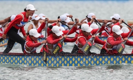女子組決賽中,中國隊出發(fā)后便處于領(lǐng)先,并一直將優(yōu)勢保持到最后,包攬本屆亞運會龍舟女子組比賽3枚金牌。印度尼西亞隊和韓國隊分獲銀牌和銅牌。