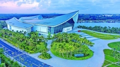 南海博物館由著名建筑師、中國工程院院士何鏡堂擔(dān)綱設(shè)計(jì),建筑體現(xiàn)了現(xiàn)代美學(xué)風(fēng)格與中國文化元素,融合了翻卷的浪花、鋪灑的漁網(wǎng)、流動的線條,具有濃郁的海南地域特征和民族特色,取義“絲路逐浪,南海之舟”。