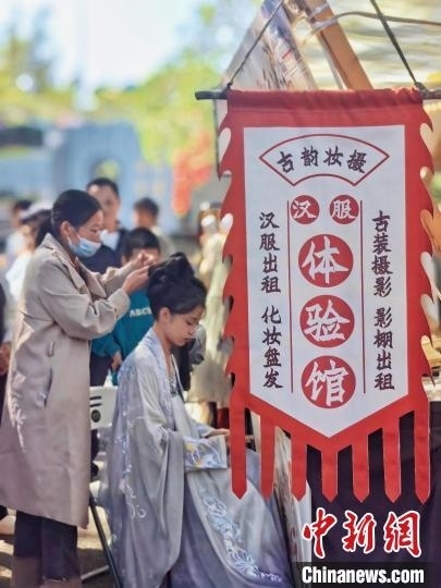 啟動儀式上,熱愛漢服文藝的市民登臺,帶來群舞、獨舞、古典舞等漢服舞蹈?,F(xiàn)場舉辦漢服市集,不少市民參與漢服體驗,欣賞、體驗或購買傳統(tǒng)飾品、非遺文創(chuàng)產(chǎn)品,參與投壺、捶丸和飛花令等活動。