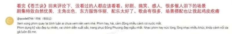 2023年前后,網(wǎng)劇《點(diǎn)燃我,溫暖你》和《長月燼明》發(fā)行至越南,迅速占據(jù)Vieon等越南本地視頻平臺(tái)首位。越南觀眾在評(píng)論區(qū)內(nèi)毫不吝嗇自己的喜愛:“我已經(jīng)看了第二遍,每次都會(huì)哭?!薄八畜@人的演員陣容、服裝、風(fēng)景,簡直太完美了!”