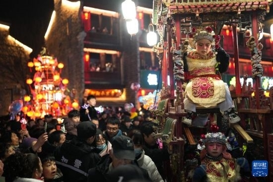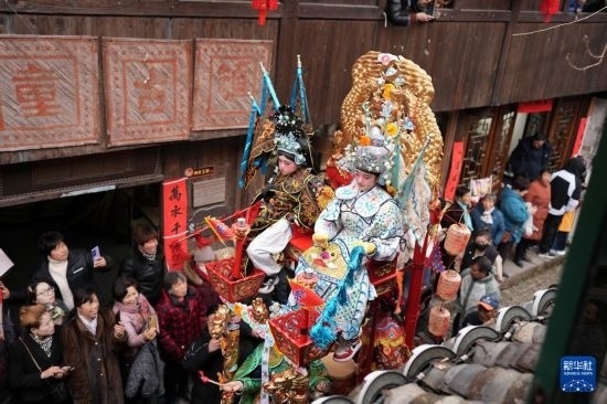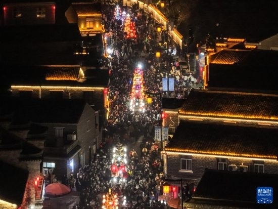 當日,有500多年歷史的前童元宵行會在浙江省寧??h前童古鎮(zhèn)舉行。每年正月十四、十五舉行的前童元宵行會始于明中葉,群眾以鳴群鑼、抬鼓亭、放銃花等方式紀念祖先開渠鑿砩、灌溉農田的功德,祈愿年景豐收。2014年,前童元宵行會入選第四批國家級非物質文化遺產名錄。近年來前童古鎮(zhèn)發(fā)展旅游經濟,元宵行會成為展示鄉(xiāng)村振興的重要窗口。
