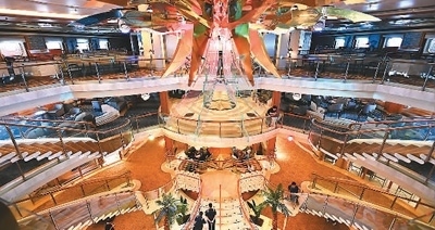 遠(yuǎn)觀“愛(ài)達(dá)·魔都號(hào)”,層疊密布的艙室和舷窗能承載5246人;走進(jìn)船體內(nèi)部,高達(dá)16層、超過(guò)4萬(wàn)平方米的生活?yuàn)蕵?lè)區(qū)域內(nèi),劇場(chǎng)、泳池、健身房、餐廳、畫廊等娛樂(lè)設(shè)施應(yīng)有盡有,儼然是一座“移動(dòng)的海上城市”。