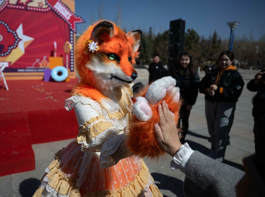 3月22日上午,在內(nèi)蒙古呼和浩特大青山野生動(dòng)物園里,5只動(dòng)物人偶正在為23日舉行的國內(nèi)大型動(dòng)物主題互動(dòng)巡游偶劇《奇幻動(dòng)物城》彩排。
