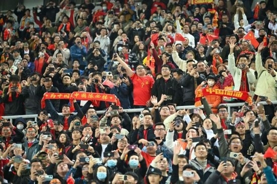 據(jù)主辦方介紹,天津奧體中心體育場(chǎng)的球票基本銷售一空,有42977名觀眾到場(chǎng)為中國(guó)隊(duì)助威。比賽在晚上8點(diǎn)開(kāi)球,結(jié)束已是10點(diǎn)左右。初春夜晚加之冷風(fēng),寒意十足,但球迷的熱情和助威貫穿全程。