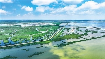 生態(tài)補水后的黃河三角洲自然保護區(qū),草木繁茂、生機勃勃。周廣學(xué)攝(人民圖片)