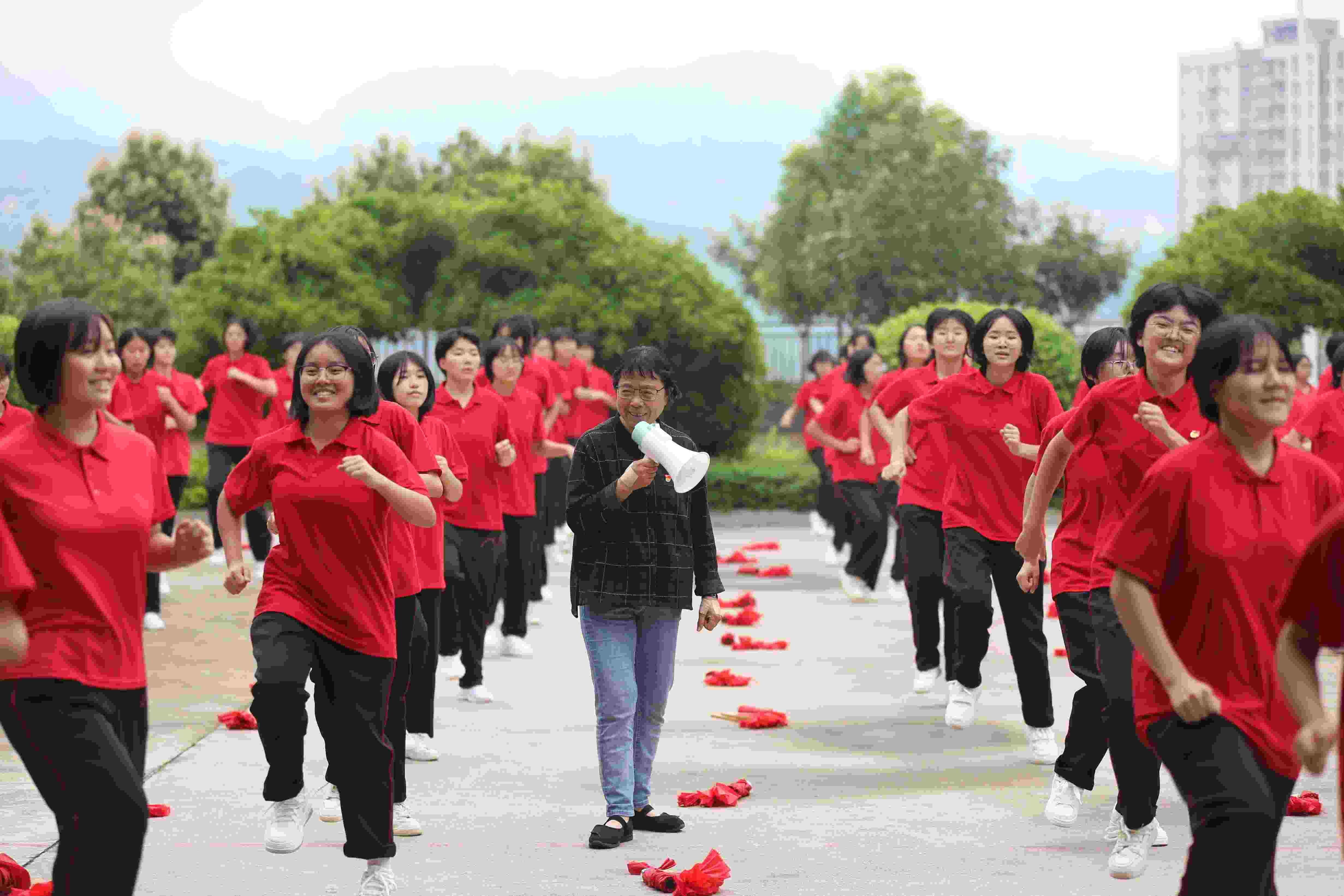 我也一直在思考如何讓舞蹈藝術抵達更多的人。舞蹈教學的傳統(tǒng)一直是口傳心授,師父帶徒弟手把手言傳身教,最多同時教十幾個學生。隨著科技進步,互聯(lián)網(wǎng)的發(fā)展讓藝術有了“亮相”的新舞臺。于是,我在網(wǎng)上開設舞蹈教學課堂,把秧歌舞重新編排成簡單易學的廣場舞,無償教給大家。有一次我去基層演出,看到當?shù)赜袀€100多人的隊伍跳我編排的秧歌舞。我知道10人、20人的舞蹈是什么樣的,但當看到100位身著統(tǒng)一服裝的舞者,100張蓬勃向上的笑臉,100條火紅的綢帶拋向天空時,那種震撼,那種感染力,讓我忍不住加入其中,和大家攜手共舞!