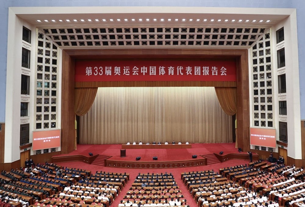在報告會上,運(yùn)動員黃雨婷、劉煥華、潘展樂、曹緣、張雨霏、馬龍和教練員張建偉,以及人民日報社體育部記者孫龍飛,分別結(jié)合自己的親身經(jīng)歷,生動講述了中國體育代表團(tuán)在巴黎奧運(yùn)會上為祖國和人民贏得榮譽(yù)的奮斗歷程,深情回顧了中國體育健兒拼搏奉獻(xiàn)、綻放奧運(yùn)的光榮時刻。