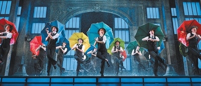 1952年,美國好萊塢經(jīng)典歌舞電影《雨中曲》上映,成為世界電影史上的不朽佳作。1983年,改編自電影的同名音樂劇在英國倫敦西區(qū)首演,并在此后的10余年間獲得諸多獎項(xiàng)。2012年6月末的一天,我坐在倫敦皇宮劇院第一排,整晚在《雨中曲》水樣的浪漫氛圍中旋轉(zhuǎn)。2025年初春,這部音樂劇來到北京,最迷人的記憶依然是結(jié)尾處將觀眾“浸沒”的那場大雨。