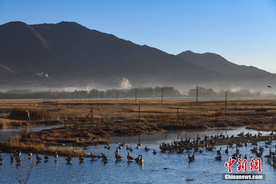 12月20日,西藏自治區(qū)拉薩市林周縣境內(nèi)的冬日風(fēng)光。嚴(yán)冬時(shí)節(jié),拉薩河谷沿線(xiàn)的草甸、山巒、候鳥(niǎo)、寺廟構(gòu)成一道獨(dú)特的風(fēng)景線(xiàn)。 中新社記者 貢嘎來(lái)松 攝