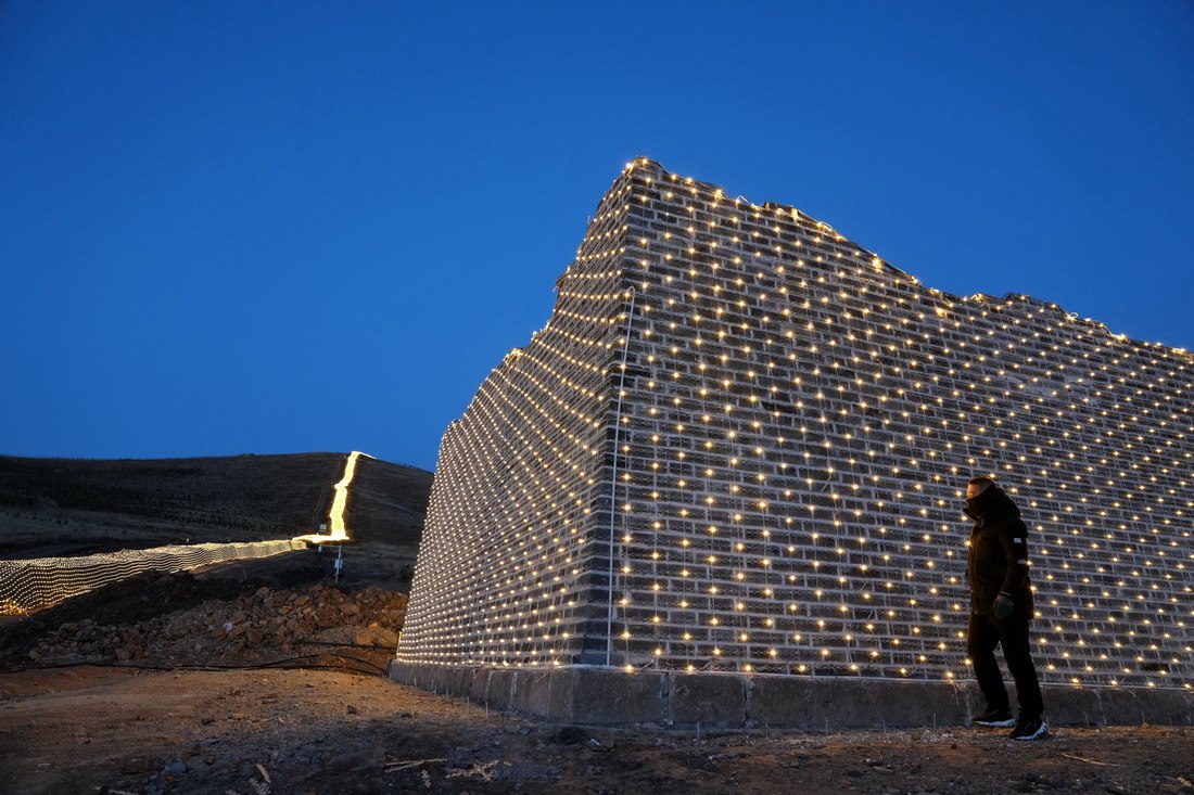 12月30日,工作人員在崇禮長城景觀展示亮化工程現(xiàn)場巡查。新華社記者 牟宇 攝