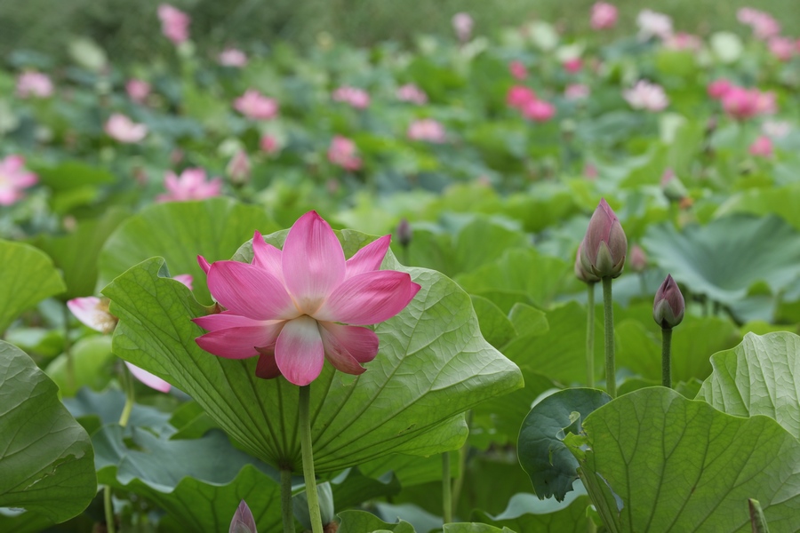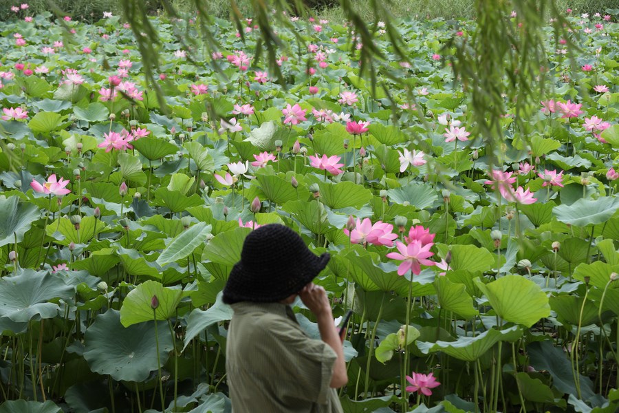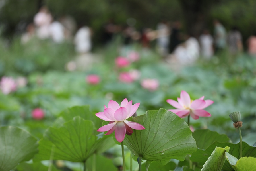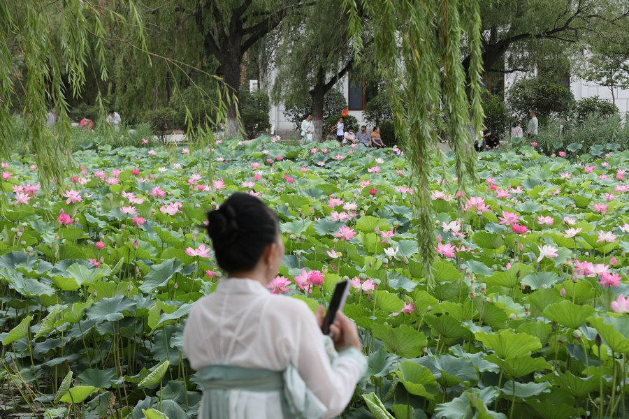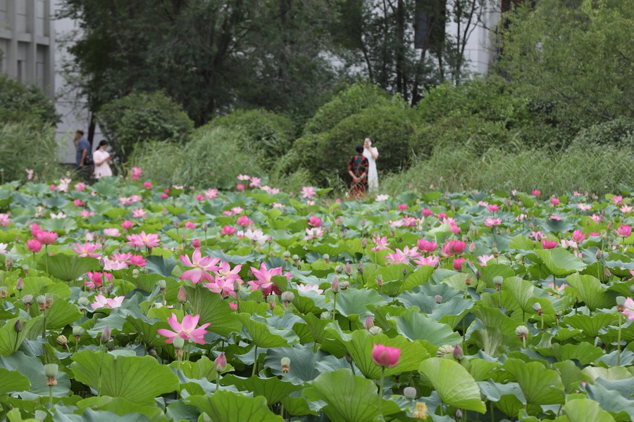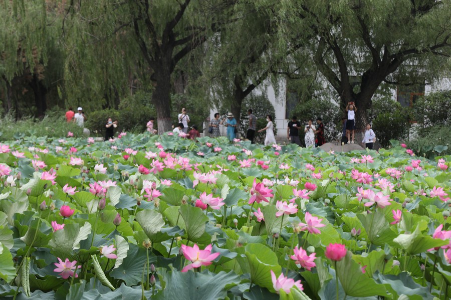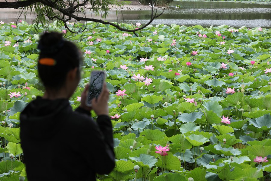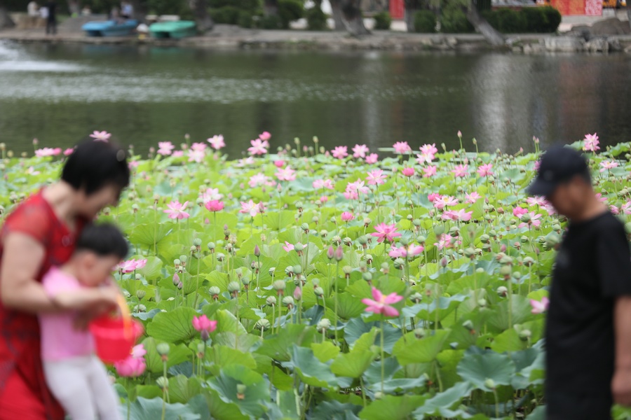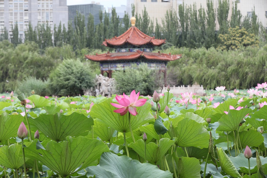 7月30日,呼和浩特青城公園的荷花進(jìn)入最佳觀賞期,吸引眾多游人前來打卡。