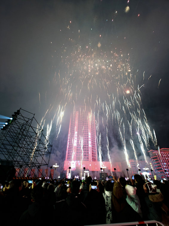 1月1日零時(shí),隨著新年鐘聲的敲響, 內(nèi)蒙古自治區(qū)呼和浩特市數(shù)萬人在新華廣場(chǎng)倒數(shù),迎接2024年到來。