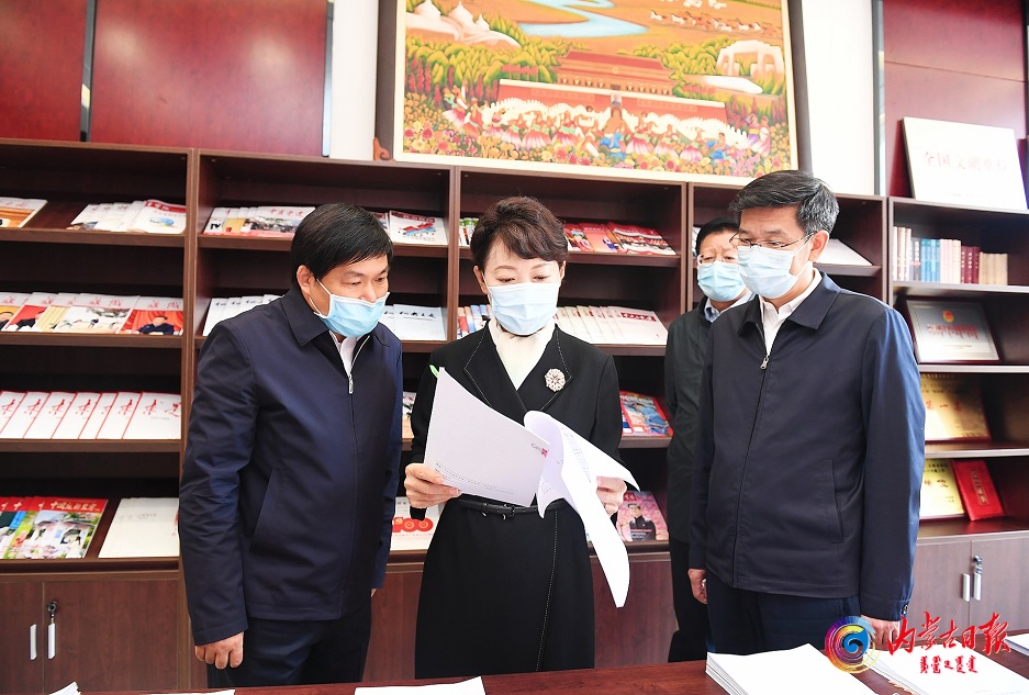 6月6日,王莉霞到財(cái)政部?jī)?nèi)蒙古監(jiān)管局走訪(fǎng),認(rèn)真翻閱山水林田湖草沙系統(tǒng)治理和生態(tài)型草種調(diào)研報(bào)告。記者韓卿立攝