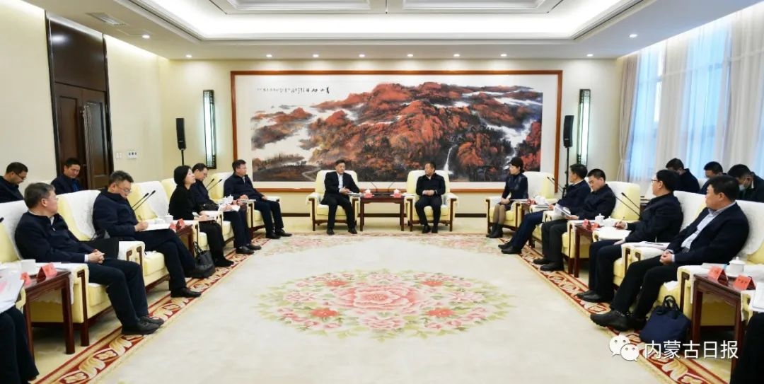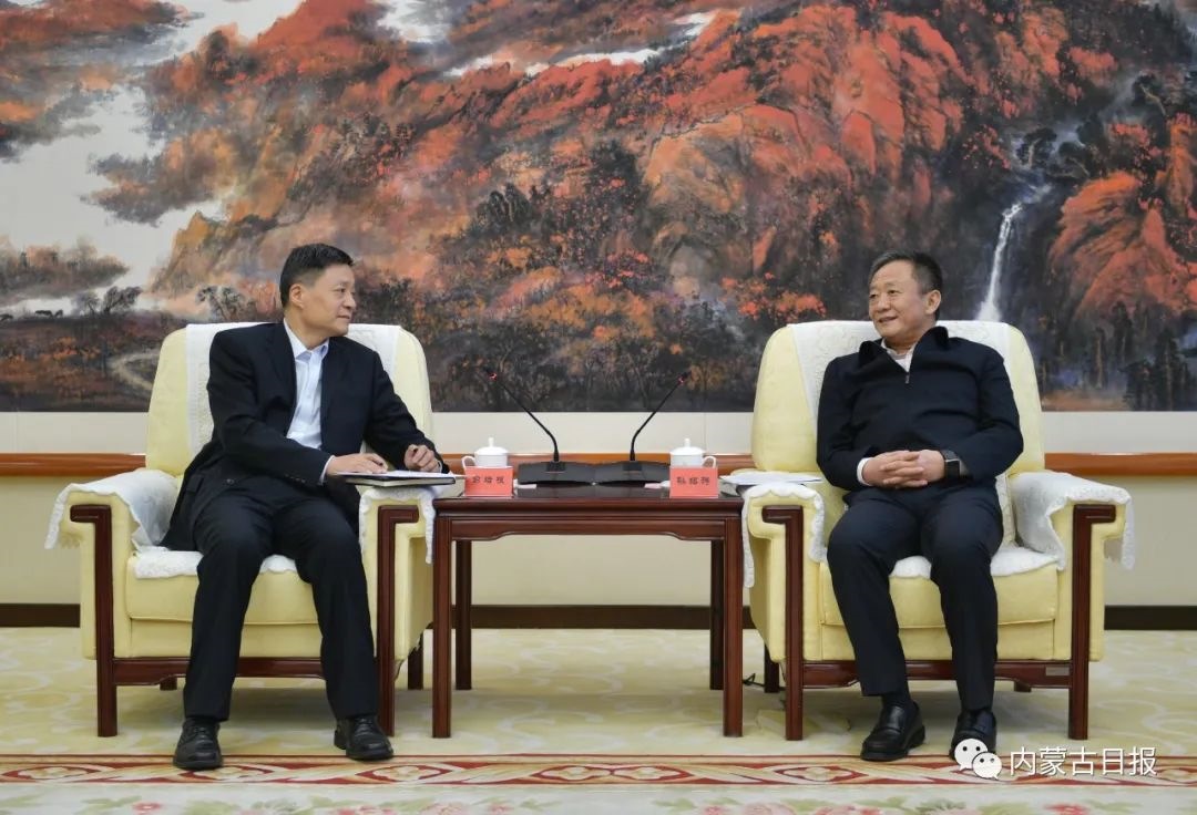 2月18日,自治區(qū)黨委書記孫紹騁,自治區(qū)黨委副書記、自治區(qū)主席王莉霞在呼和浩特會(huì)見中國(guó)東方電氣集團(tuán)有限公司黨組書記、董事長(zhǎng)俞培根一行。內(nèi)蒙古日?qǐng)?bào)社融媒體記者 馬建荃攝