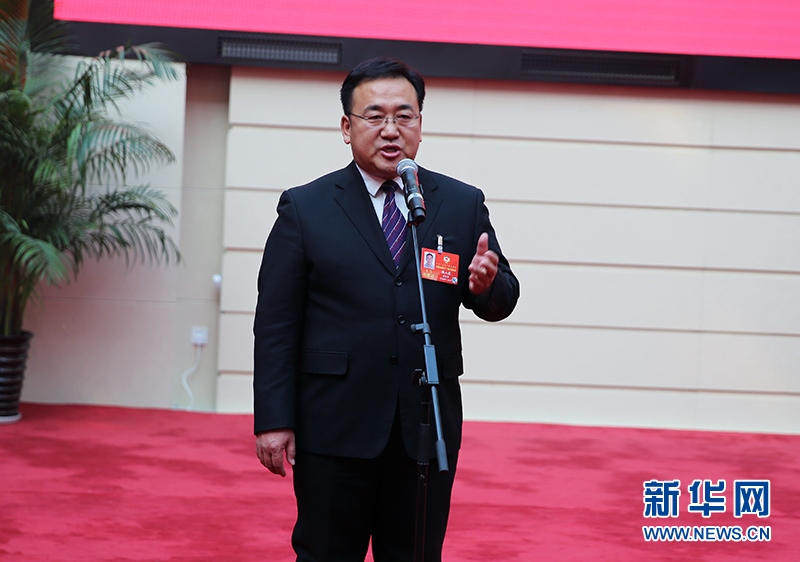 13日下午,在內蒙古自治區(qū)政協(xié)十二屆三次會議舉辦的第二場“委員通道”上,政協(xié)委員魏山虎在回答記者提問。新華網(wǎng)石毅攝