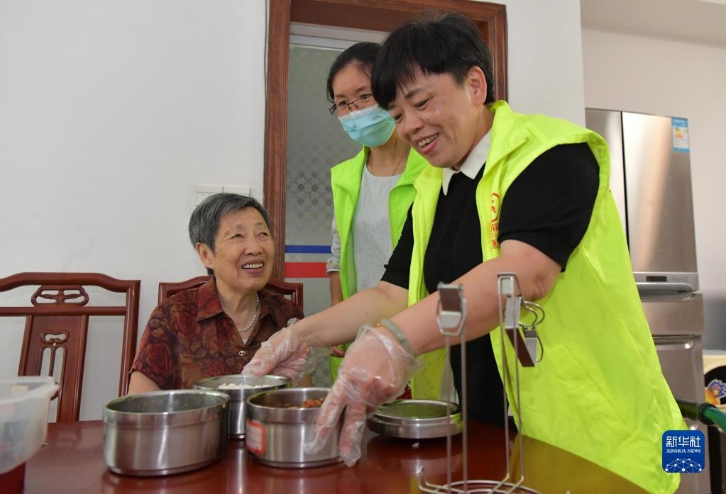 在江西省南昌市東湖區(qū)彭家橋街道文教路北社區(qū),“幸福食堂”的義工在給社區(qū)內(nèi)出行困難的老人提供送餐服務(wù)(2020年7月29日攝)。從2018年12月起,南昌市東湖區(qū)彭家橋街道在社區(qū)打造以黨建引領(lǐng)、社區(qū)主導(dǎo)、愛心企業(yè)贊助的“幸福食堂”,專門為社區(qū)獨(dú)居、孤寡及生活困難的老年人提供營(yíng)養(yǎng)餐,以此進(jìn)一步完善社區(qū)居家互助養(yǎng)老服務(wù)。新華社記者 彭昭之 攝