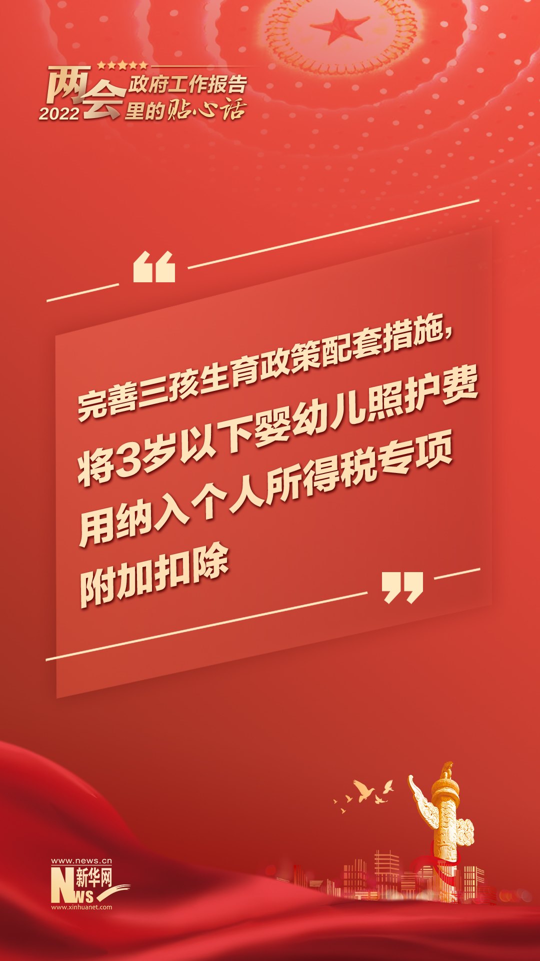 堅(jiān)持政府要過(guò)緊日子,更好節(jié)用裕民;讓三百六十行行行人才輩出;將3歲以下嬰幼兒照護(hù)費(fèi)用納入個(gè)人所得稅專項(xiàng)附加扣除;裝滿“米袋子”、充實(shí)“菜籃子”,把14億多中國(guó)人的飯碗牢牢端在自己手中……今年政府工作報(bào)告里的這些話,既貼心又有力!