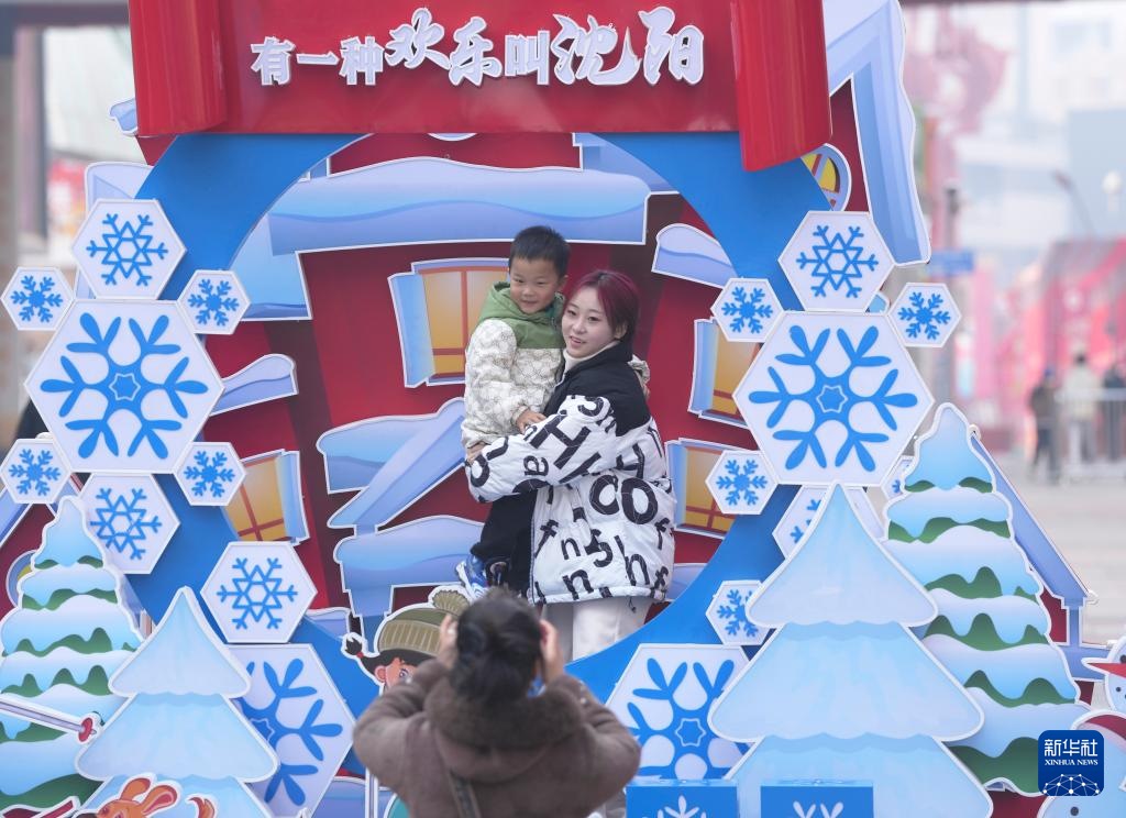 ??2月9日,游客在沈陽中街拍照留影。