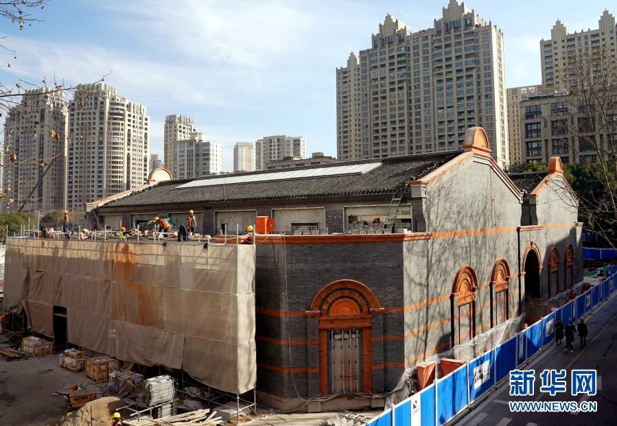 這是正在施工中的中共一大紀(jì)念館(1月14日攝)。新的基本陳列展廳建筑面積約3700平方米,將展出各類展品超1000件,其中實物展品600余件。新華社記者 劉穎 攝