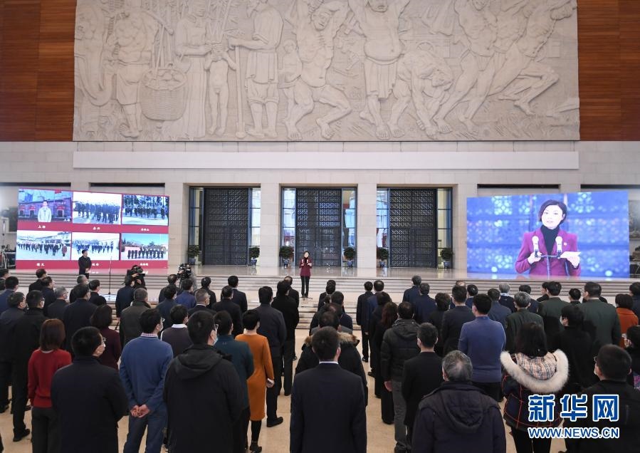 1月18日在北京國家博物館拍攝的“奮斗百年路 啟航新征程”大型主題采訪活動(dòng)啟動(dòng)儀式現(xiàn)場。新華社記者 申宏 攝