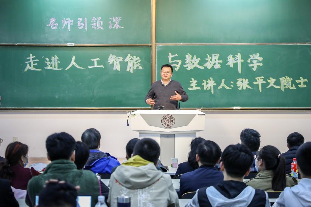 中國科學(xué)院院士張平文為南開學(xué)子講授“名師引領(lǐng)”通識(shí)課之“走進(jìn)人工智能與數(shù)據(jù)科學(xué)”。(南開大學(xué)供圖)