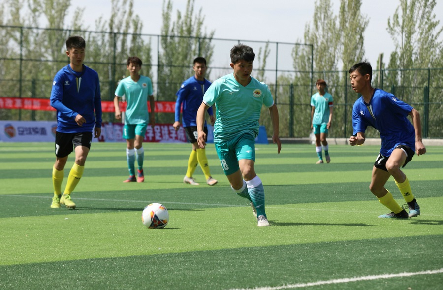 5月10日-17日,2021年內(nèi)蒙古自治區(qū)青少年足球聯(lián)賽暨青少年足球錦標(biāo)賽在內(nèi)蒙古師范大學(xué)足球?qū)W院舉行。此次比賽,共有來(lái)自全區(qū)各盟市的31支代表隊(duì)參賽,各代表隊(duì)以盟市為單位組隊(duì)報(bào)名,通過(guò)比賽,將進(jìn)一步探索主客場(chǎng)聯(lián)賽賽制,檢驗(yàn)各地區(qū)足球青訓(xùn)體系建設(shè)成效,活躍校園足球文化,以期發(fā)現(xiàn)和選拔更多優(yōu)秀足球運(yùn)動(dòng)員。圖為比賽揭幕戰(zhàn)現(xiàn)場(chǎng),烏海代表隊(duì)對(duì)陣鄂爾多斯代表隊(duì)。