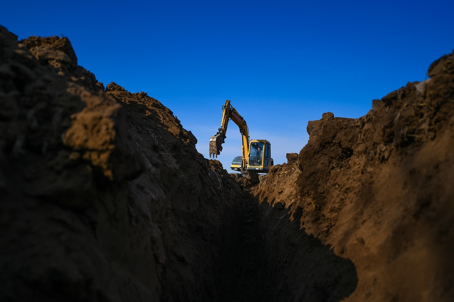 連日來,隨著天氣轉(zhuǎn)暖,呼和浩特市土默特左旗各鄉(xiāng)鎮(zhèn)、各部門迅速掀起春耕備耕熱潮,紛紛搶抓農(nóng)時,全力投入春耕備耕生產(chǎn)中,為農(nóng)業(yè)增效、農(nóng)民增收打下了堅實的基礎(chǔ)。圖為高標(biāo)準(zhǔn)農(nóng)田建設(shè)施工現(xiàn)場。(攝影:楊鑫) -
